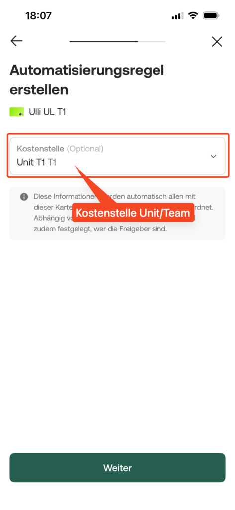- Kostenstelle: Eure Unit-Kostentelle