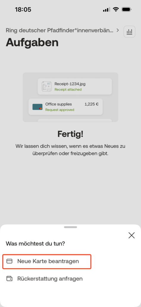 Wenn ihr die Karte beantrage habt, muss die Erstellung der Karte vom Finance Team freigegeben werden. Habt etwas Geduld, dass kann auch mal ein paar Tage dauern. Nach der Freigabe steht euch die Karte sofort zur Verfügung und kann zum Bezahlen genutzt werden.