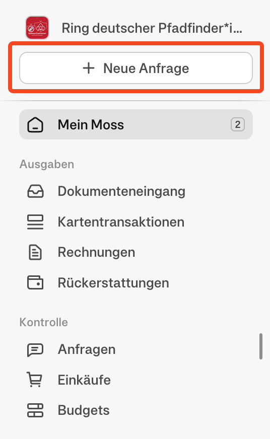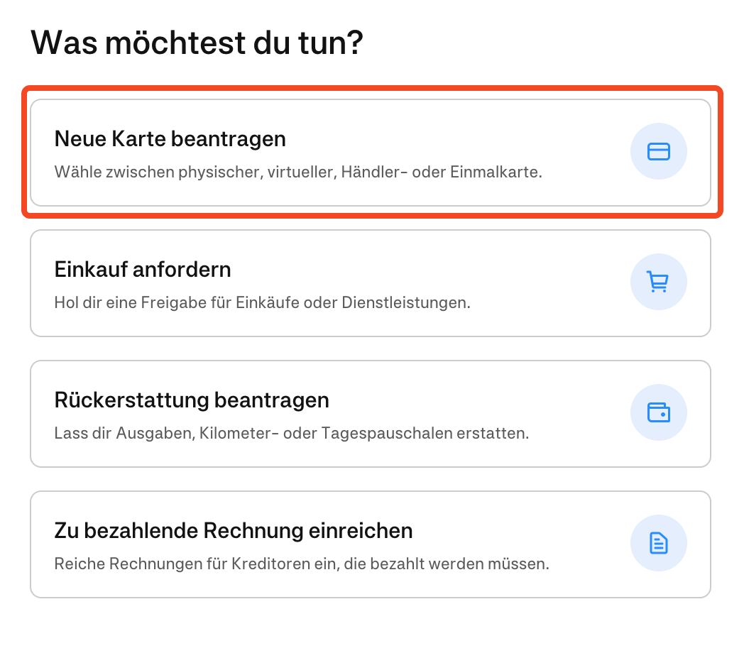 Gehe auf „Neue Anfrage“ und wähle dann „Neue Karte beantragen“ aus