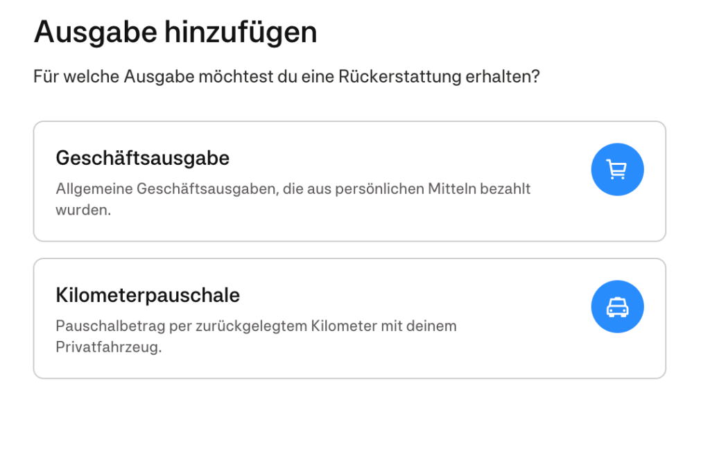 Du kannst dann deiner Rückerstattung eine oder mehrere Ausgaben hinzufügen. Wenn du für Hin- und Rückfahrt getrennte Tickets gekauft hast oder wenn du auch noch eine BahnCard gekauft hast, dann sind das mehrere Ausgaben. Hinweis: Bei dem Kauf einer BahnCard kannst du später mehrere Belege (z.B. die Rechnung der BahnCard und die Nachweise zu den Kosten ohne BahnCard) hinzufügen. Also